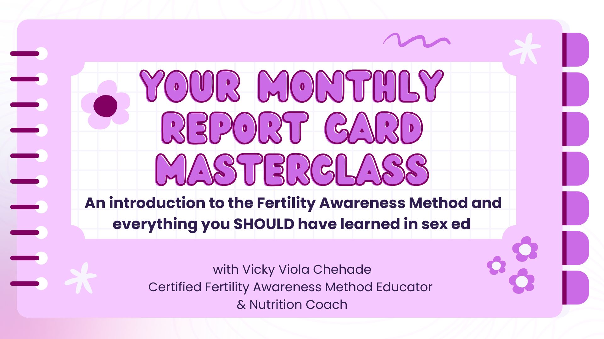 Join Vicky, a certified Fertility Awareness Method Educator for a free Masterclass to get an introduction to the Fertility Awareness Method and everything you SHOULD have learned in sex ed about your menstrual cycle and fertility!
