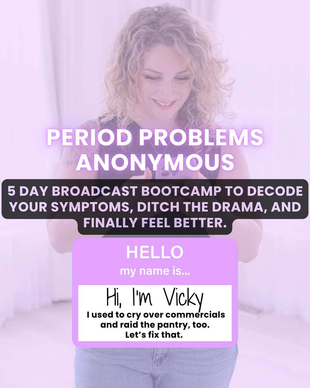 Inside this FREE 5-day broadcast series, I’m going to show you how to finally decode your period symptoms, stop throwing random supplements at your cycle, and actually feel better—without obsessively tracking, cutting out all your favorite foods, or wondering if you're just “too hormonal.”